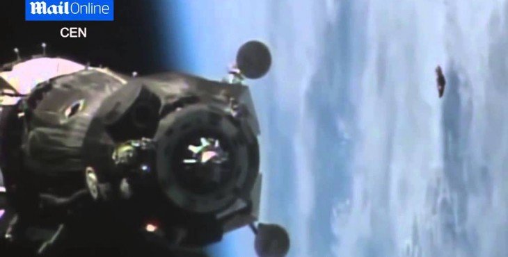 A video shot of the Soyuz about to dock with the ISS and an unusual object accompanying it in the distance....