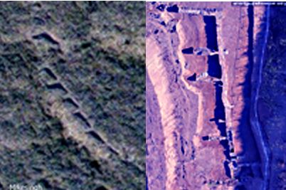 Or like the trenches on the right side in the image below where 21 Germans were killed when a huge Allied shell exploded above the tunnel in eastern France in 1918, causing it to cave in. So was it some sort of a tunnel that caved in? Striking resemblance!