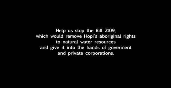Hopi Tribal Chairman LeRoy Shingoitewa and Council Representative George Mase have been giving out false information that the Hopi Tribe approved Senate Bill 2109, the Navajo-Hopi Little Colorado River Water Rights Settlement Act of 2012, when in fact, the Hopi Tribal Council, by a vote of 11 for, 4 against, and 0 abstentions, rejected the Kyl bill on June 15, 2012. Over 100 tribal members witnessed this historic event.