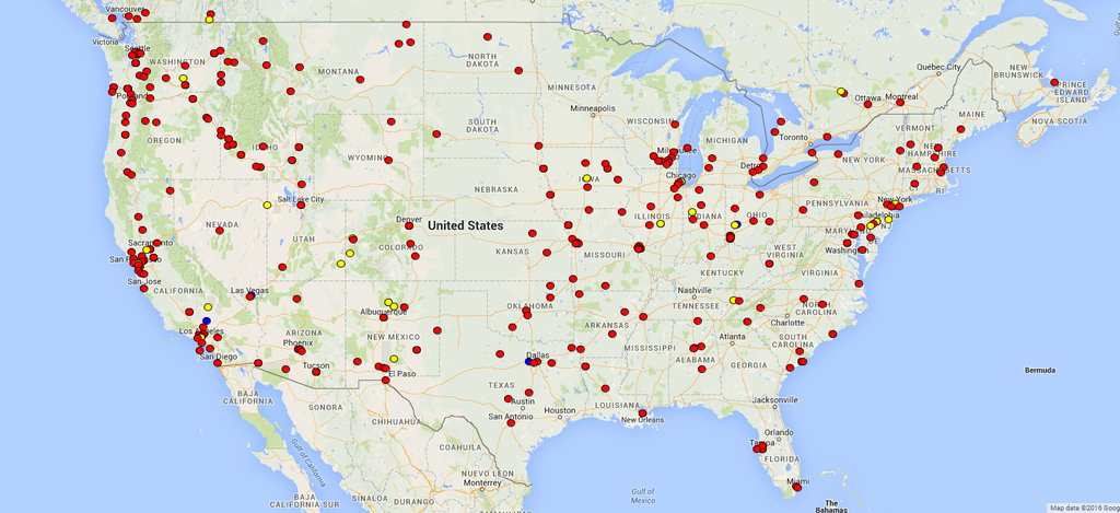 Here's quick draft I put together of a map of The Manhattan Project locations, with an overlay of 2 weeks worth of 1947 sightings.