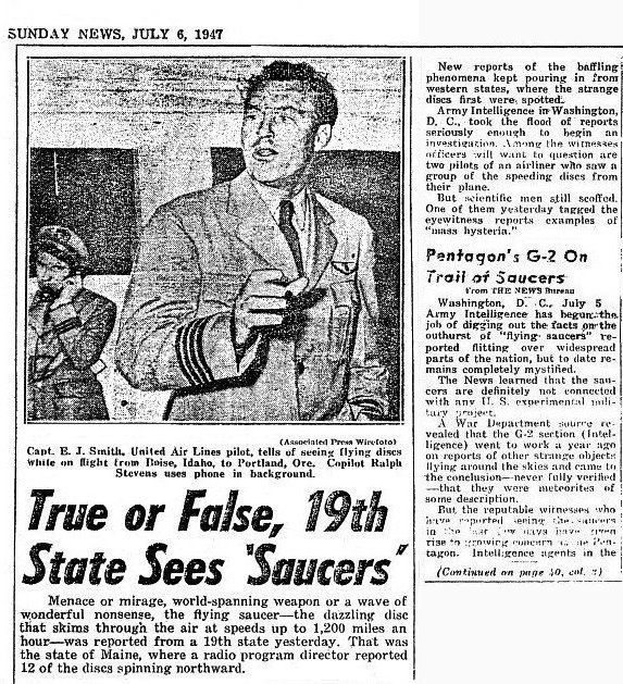 United Air Lines Flight 105 left Gowan Field, Boise, bound for Seattle with Captain Emil J. Smith at the controls and First Officer Ralph Stevens in the co-pilot's seat. Before they boarded the plane in Boise, someone had asked them if they had seen any flying saucers, and Smith jokingly retorted, "I'll believe them when I see them."