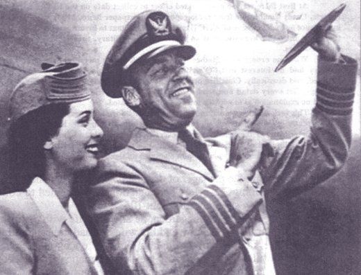 United Air Lines Captain E.J. Smith calmly and confidently poses with stewardess Marty Morrow the day after their harrowing experience aboard Flight 105 -