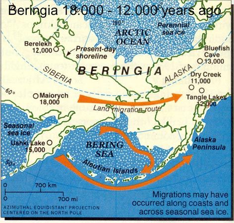 QuoteDuring the ice ages, Beringia, like most of Siberia and all of Manchuria, was not glaciated because snowfall was extremely light. It was a grassland steppe, including the land bridge, that stretched for several hundred miles into the continents on either side.