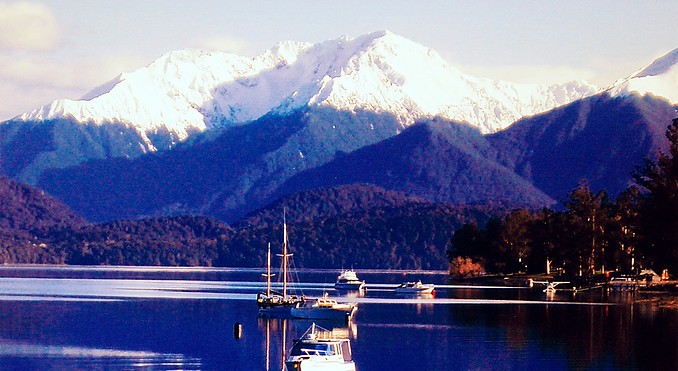 The Location of Te Anau shown with a RED "Flag", in the Satellite Image below.