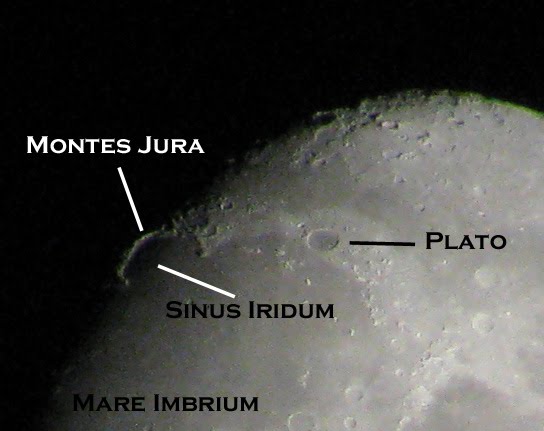 Sinus Iridum (Latin for "Bay of Rainbows") is a plain of basaltic lava that forms a northwestern extension to the Mare Imbrium on Earth's moon