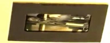 As the various renderings demonstrate, there isn't much to work with from the get-go, nevertheless we thought we'd try our hand at it here at TUFOC. Above is our example of a still from Adam's documentary; the image was enlarged, enhanced, reconfigured to the proper perspective (as to look at it straight on) and finally (re)encased in a time relevant, Kodachrome pressboard mount.