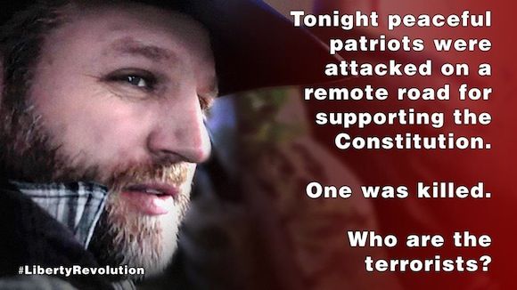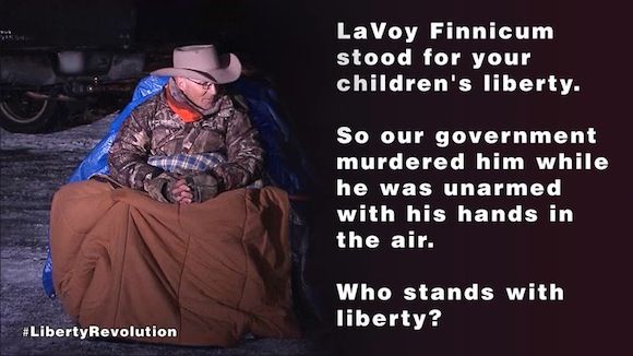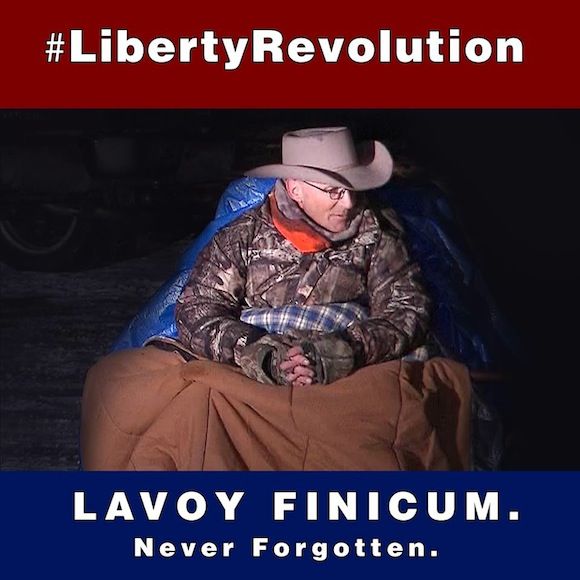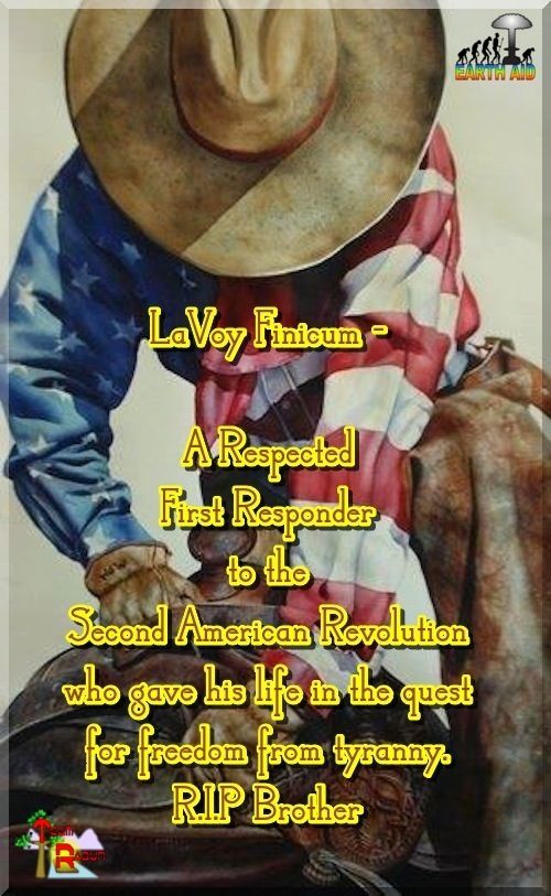 In MEMORY OF LAVOY FINICUM. A GREAT MAN AND A TRUE AMERICAN PATRIOT, HE GAVE HIS LIFE SO WE COULD BE FREE, He is now Cradled Up in the Arms of The Lord.?