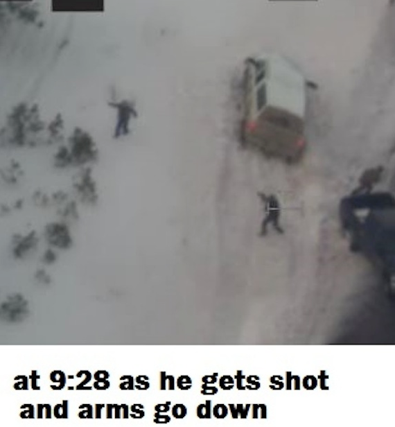 Unfortunately, we don't know what he was saying, and what was being said to him. He appears to have been gesturing, or trying to keep his balance while moving in the deep snow. Although he may have been animated, he does not appear to have been threatening or posing any real threat or danger to anyone. The FBI claims that LaVoy had a loaded firearm in an inside pocket of his coat.