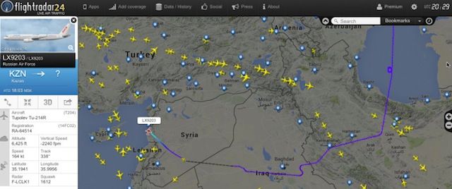 With its ADS-B transponder signals broadcast in the clear and detected by Flightradar24 collecting stations, the aircraft could be tracked as it followed the eastern corridor from Russia, to the Caspian Sea and then to Syria via the Iranian and Iraqi airspaces.