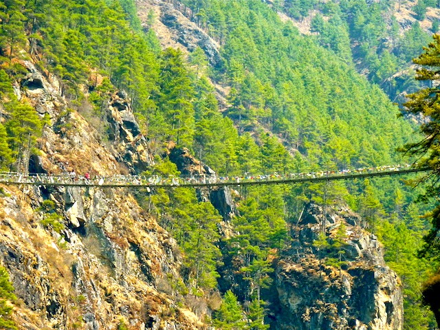 This I think is a view from another direction where you can see two bridges... Its known as the Hillary bridge on the way to the villages known as Namche Bazarr Nepal  on the Dudh Kosi River Gorge.